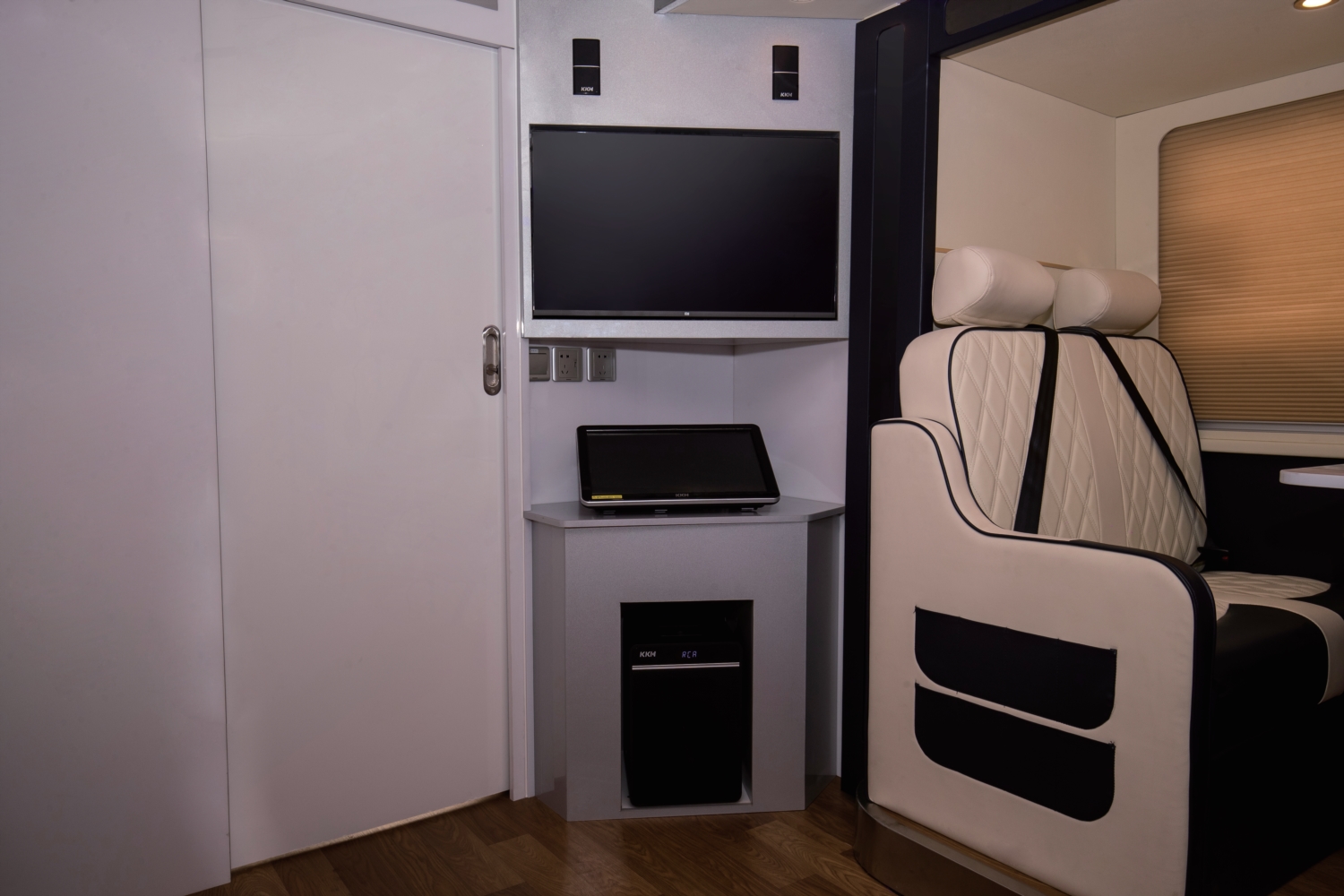 內(nèi)置氛圍燈帶和 KTV點(diǎn)唱系統(tǒng),兼具商務(wù)接待功能。