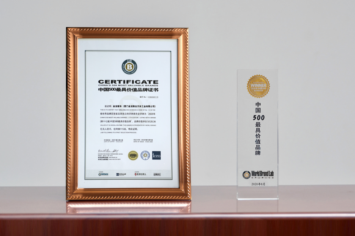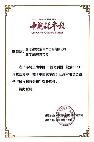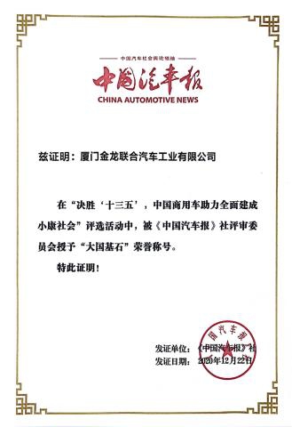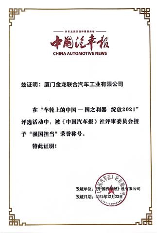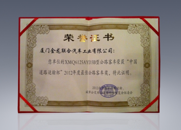 2017-中國客車工業(yè)60周年榮譽證書-十大公路-旅游客車-XMQ6129Y