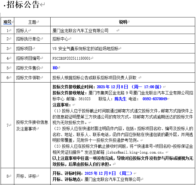公開招標(biāo)招標(biāo)公告-V8氣囊系統(tǒng)標(biāo)定的場地招標(biāo)(第二次)
