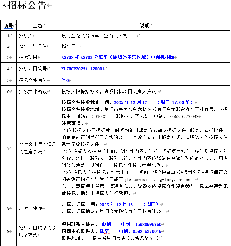 公開招標(biāo)招標(biāo)公告-KSY02和KSY03公路車(除海外中東區(qū)域)電視機(jī)